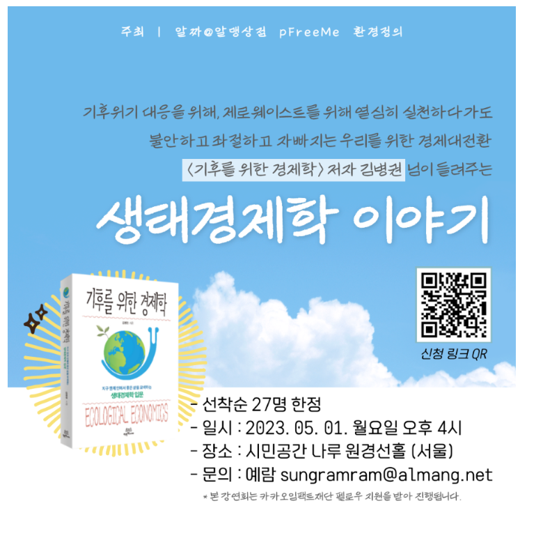 저번 3월에 읽은 책은 바로 김병권 선생님의 <<기후를 위한 경제학>>이었습니다. 이 책을 같이 읽다가 좀 더 저자의 이야기가 궁금해져서 김병권 선생님을 모시고 알짜 미라클 모닝 저자 특강을 열기도 했답니다.